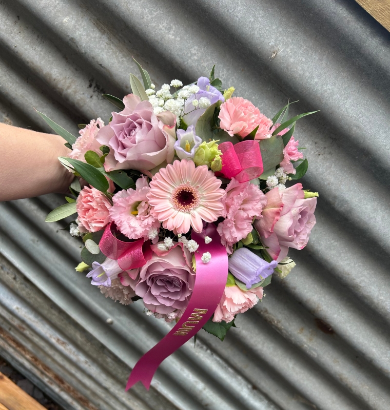 A beautiful posy in a selection of gentle pale colours, created in honour and to remember a much loved mum on mothers day. Perfect for placing at a graveside or kept close in quiet remembrance.